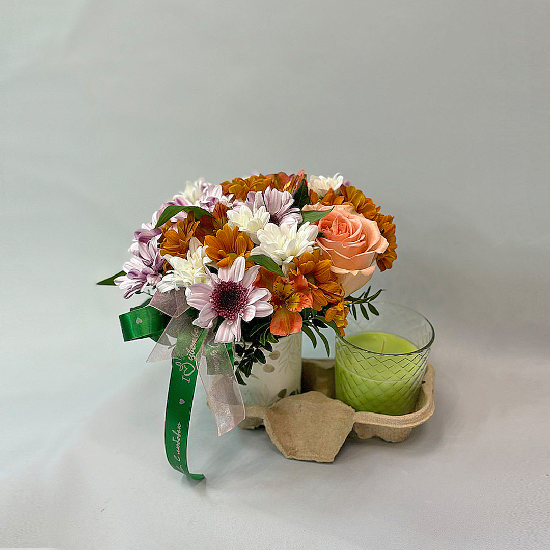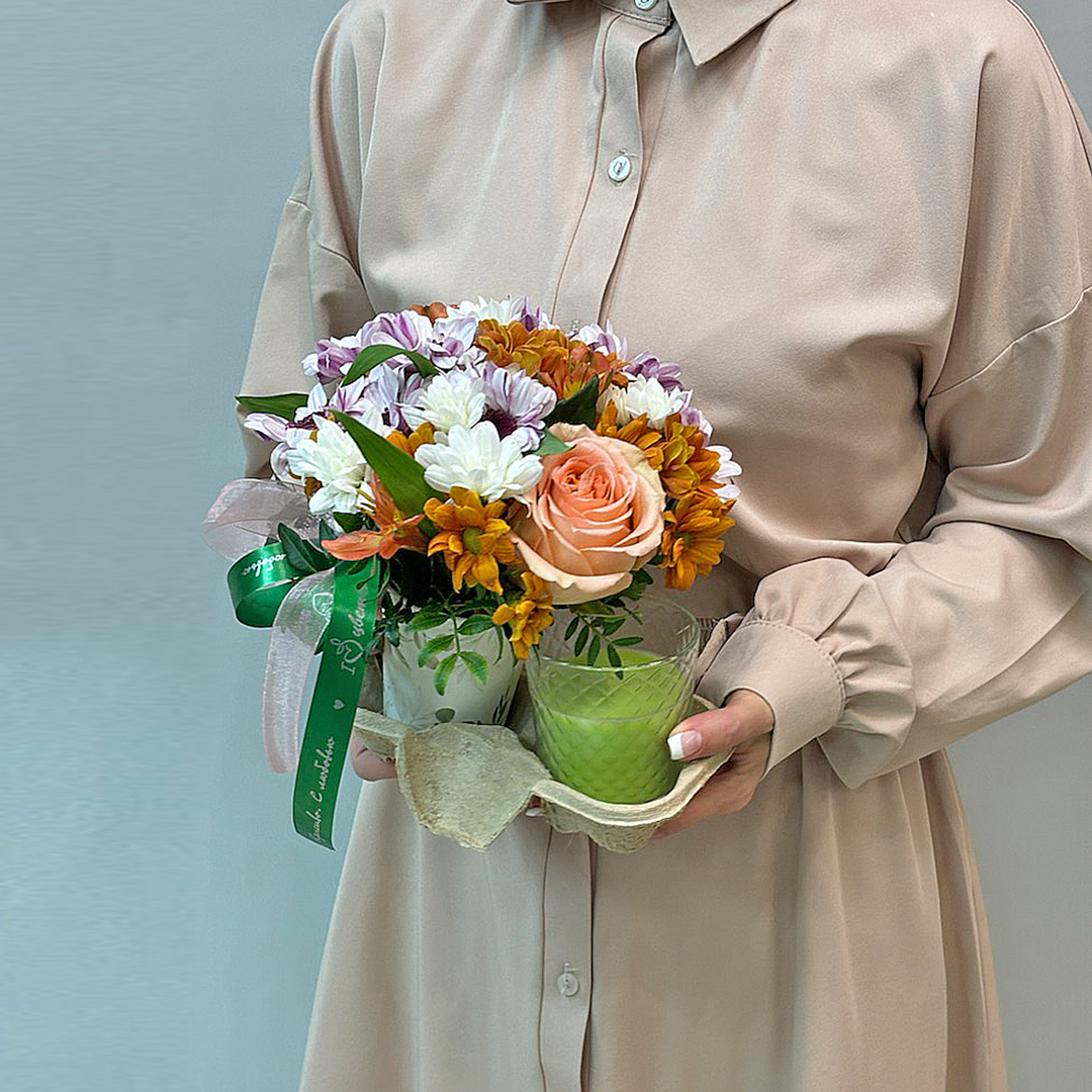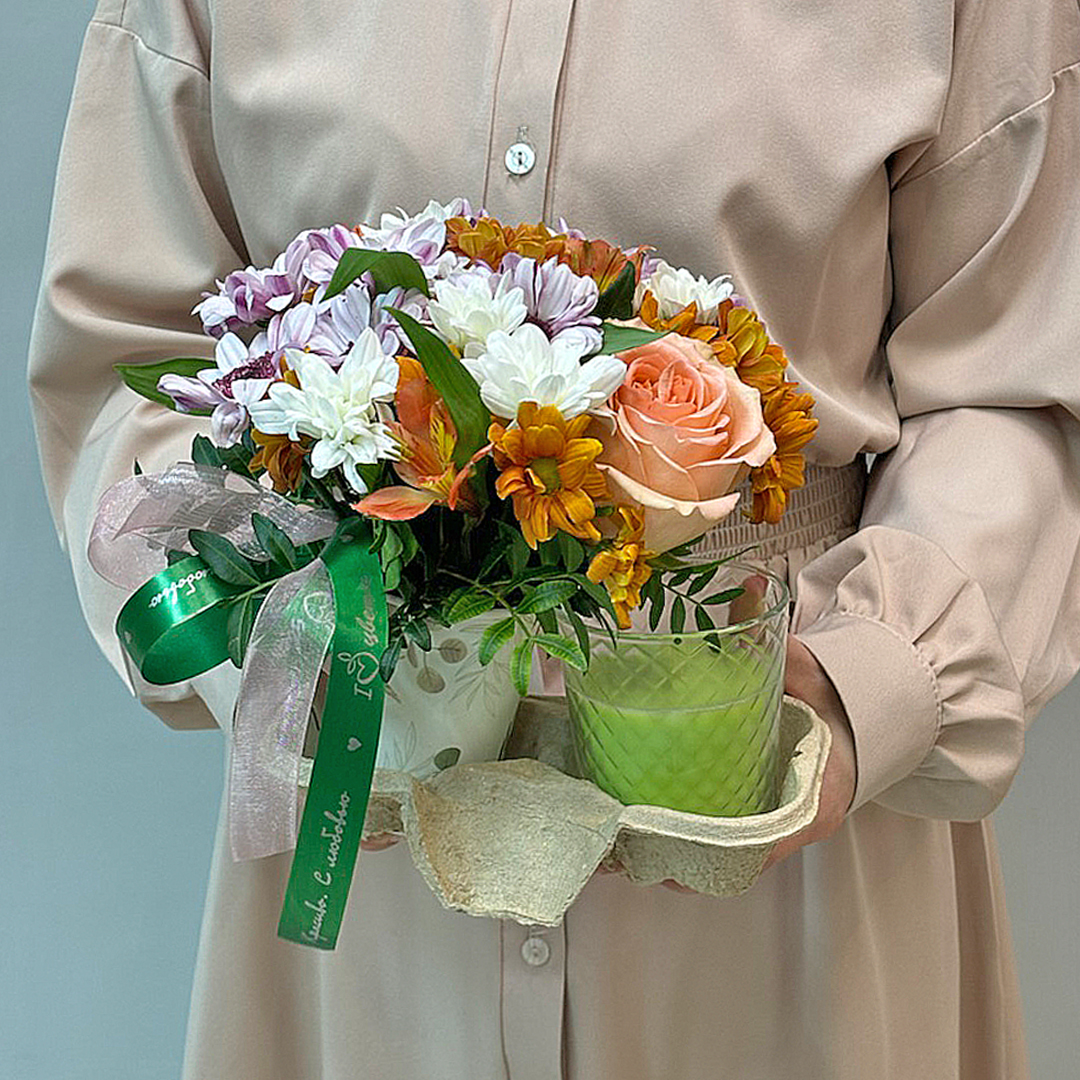 Сет "Лайм". Набор стаканчики с цветами и аромасвечой 70402