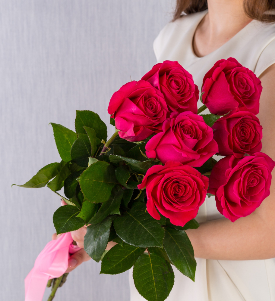 Букет из 7 розовых роз с крупным бутоном 60 см. арт. 36400