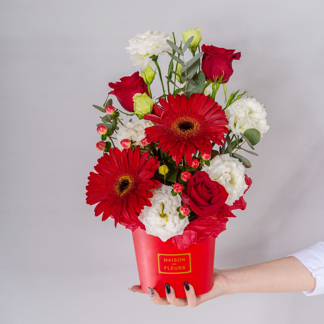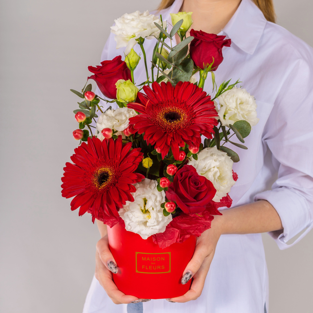 Коробка с розами и эустомой арт. 67000