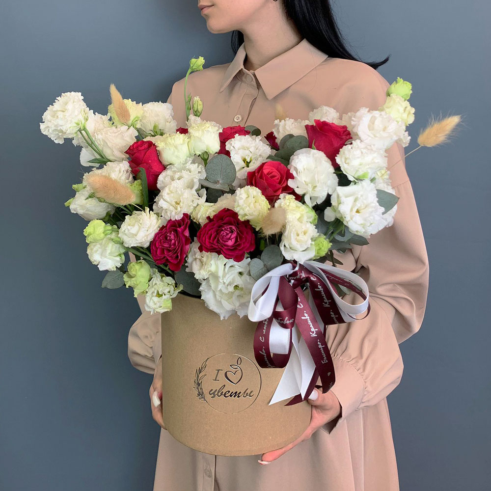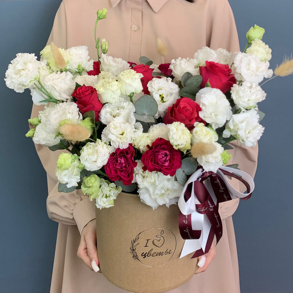 • Коробка с красными и белыми розами "С любовью в сердце" арт. 7056