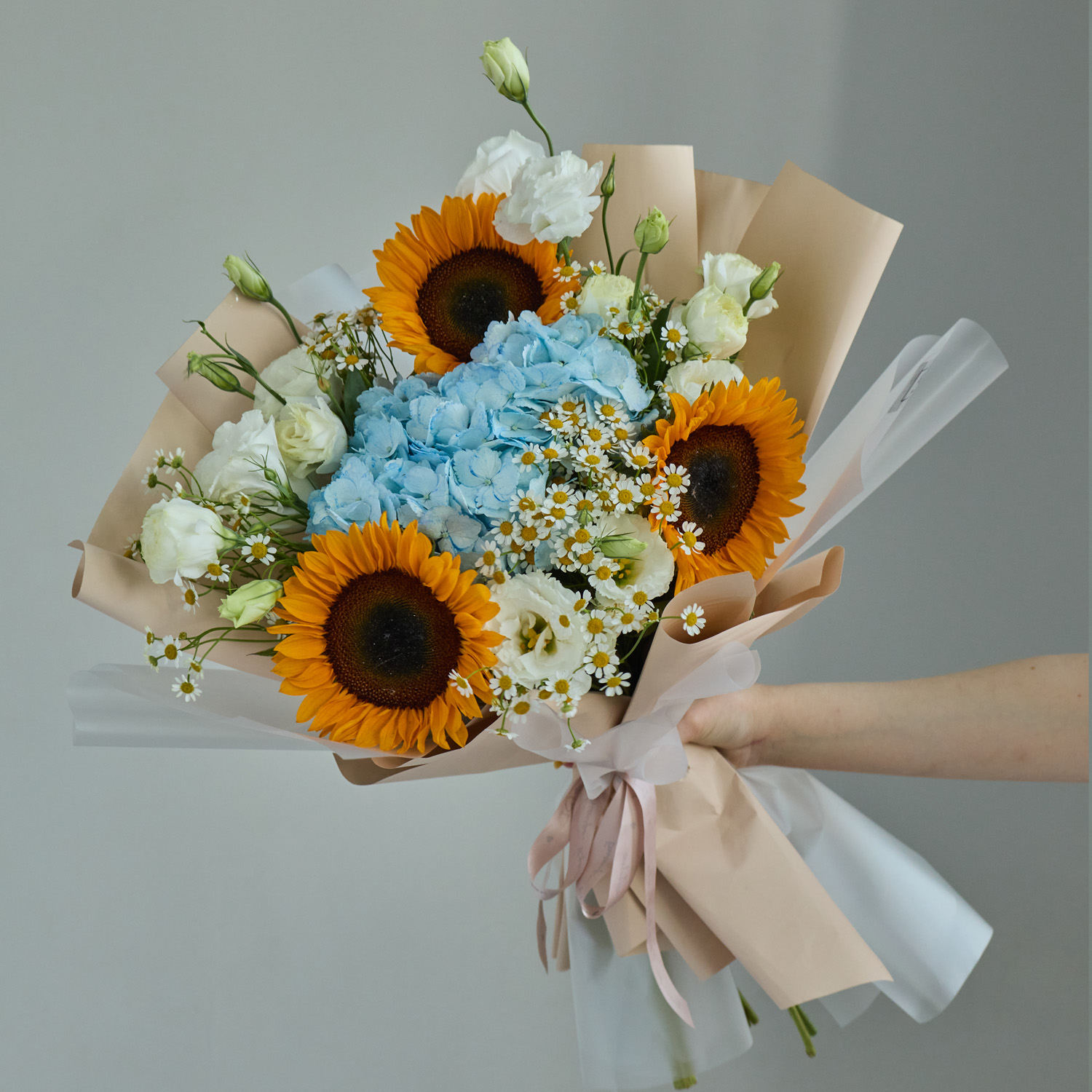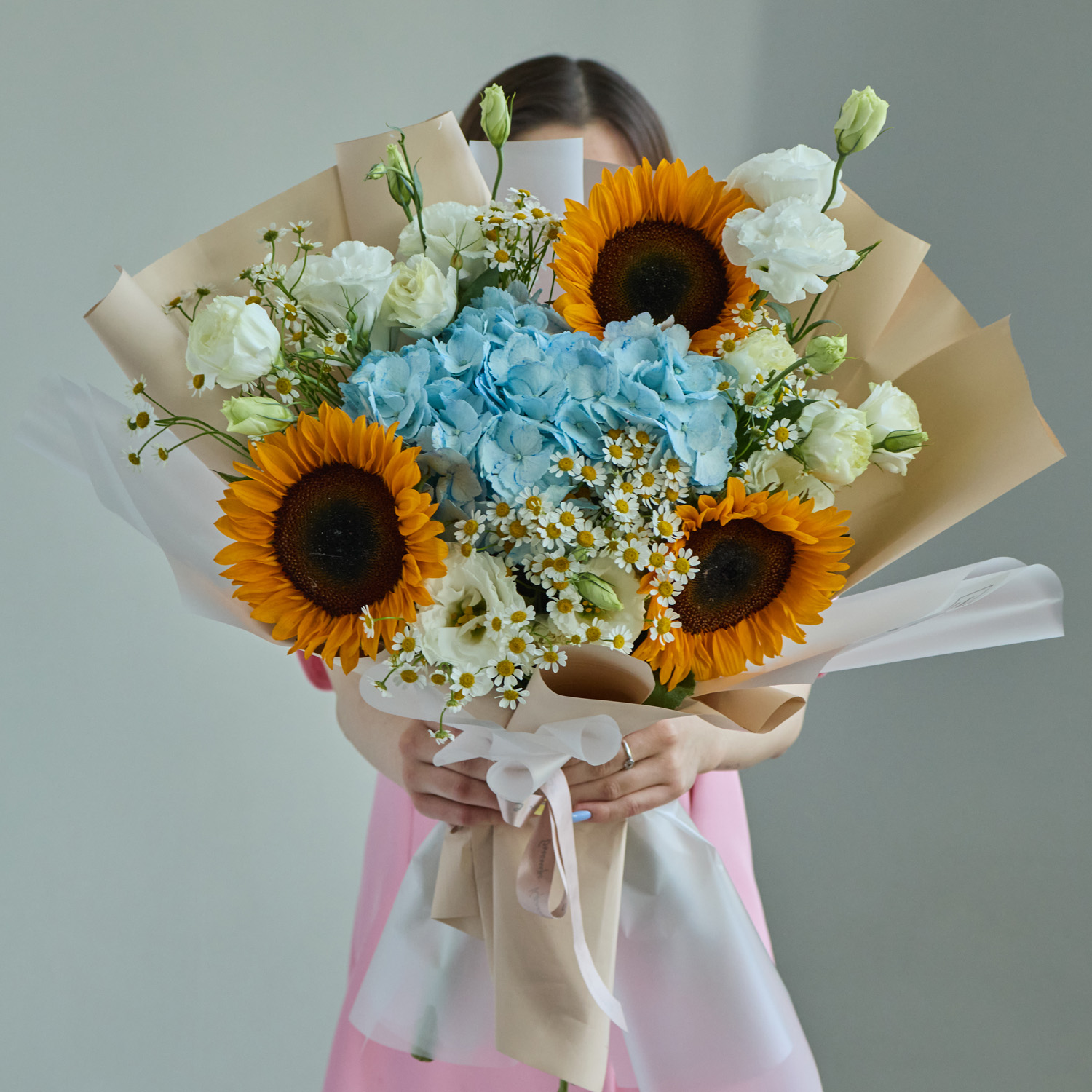 Небольшой букет с гортензией и альстромерией арт. 84571